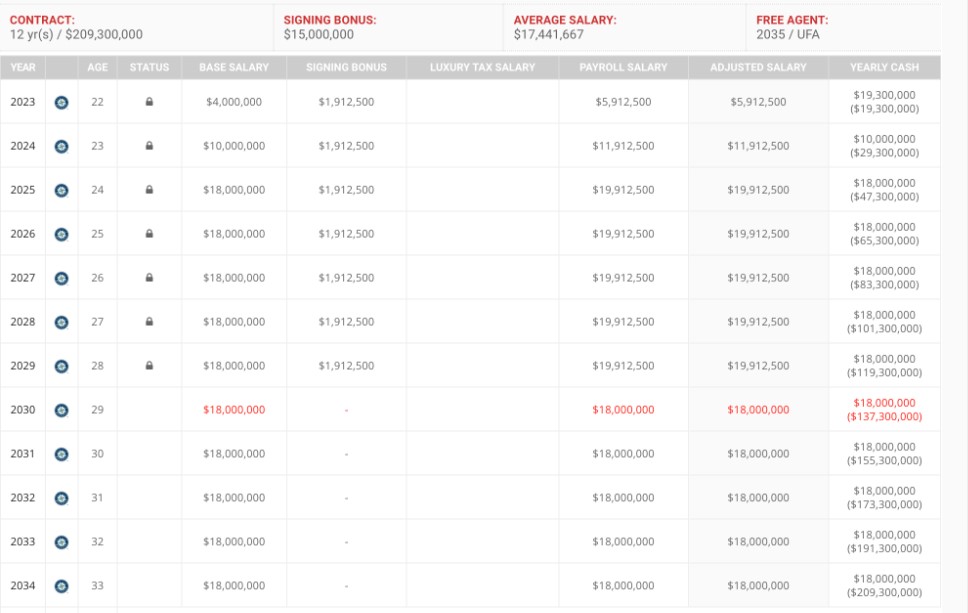 En un nivel máximo, este contrato puede ascender a 18 años, $ 469,3 millones, el acuerdo más largo y costoso en la historia del deporte.